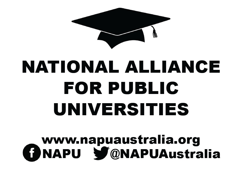 The National Alliance for Public Universities formed in 2014 to offer a new voice in higher education. The support of Universities Australia and all Vice Chancellors (with one exception) for the Federal Government’s higher education deregulation bill allowed Minister for Education Christopher Pyne to claim that the universities were ‘fully supportive of his government’s proposals’ despite overwhelming dissent from students and staff. NAPU has challenged this false consensus and has spoken with a more authentic and representative voice. We have argued that in voicing their support for deregulation, university managers have demonstrated they are remote, unaccountable and profoundly out-of-touch with the communities they purport to lead. NAPU provides an alternative. The Charter for Australia’s Public Universities has now been signed by nearly 1500 university staff and the NAPU Facebook page reaches even larger numbers:. Up until now NAPU has operated largely as a loose web-based network coordinated by a Sydney-based collective.